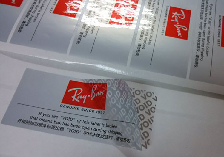 VOID防拆标签(防伪字模不干胶),是一种基材大部分为塑料薄膜的揭示型不干胶防伪材料,包括揭开镂空留文字,留图案,揭开时分层并且显示隐含在层间的内容,可防止未经许可的揭启,移动,再贴。多用于物料标签,防盗封口标签,封条,分层多用于电码防伪标签,一次为基材生产的标签,如被揭开或撕下就会分离并显现出预先设置的团或文字,即不干胶面料与贴物表面会产生明显的,结构性的破坏,如:“VOID已开封”等字样,从而达到保真的目的,并提供自动检验的功能,具有一揭即毁,一损即现,一现便知真伪及不可重复使用的特点。